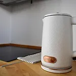 - ❓¿Hay una cocina disponible en este apartamento para uso de los huéspedes?Sí, este apartamento está equipado con una cocina completa y ofrece también un horno de microondas, un hervidor eléctrico y menaje de cocina.